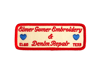 The Elmer Gomer Hat Patch is a manufactured patch made of red and blue thread on natural canvas, sized at 4 x 1.5 inches.