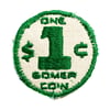 The Gomer Coin patch is a 2.25 inch round patch made of canvas, thread and denim.